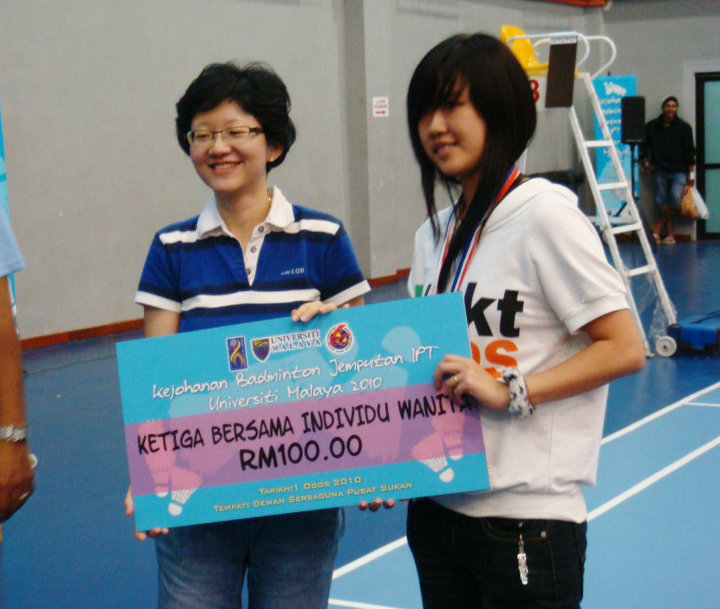 I finished my class 20minutes ago. I feel really awful now. I have to sit for the English Language Test very soon and yet I didn't prepare anything. I must at least score band 6 out of band 9 in this test or else I'll consider as fail. This is real bad mann. I am gonna sit for two tests next week which is one on Monday and the other one on Thursday. Sigh!! The main purpose of blogging today is actually talking about my tournament the other day. Well, I managed to get second-runners up in this tournament. I wasn't upset as I was beaten by a national player. So,yea. I am awfully happy with my result and basically with my team mates as well. My team mates are really crazy. I really miss those moments with them especially when we played the 'cheating' game together. On Saturday after finish playing, all of us when to Mid Valley. We walked till almost 12 plus. So,by time we reached back to hostel,it's like almost 1 in the morning. Well, our girl's hostel is locked and we girls have to overnight in guy's hostel. We played the 'cheating' game once again and we are willing to sleep only at 3am. Lol. The next morning, all of us like you know those zombies walking along the street. Surprisingly our boy won the boy's single despite he slept late the last night. That's really cool isn't it? Lol. I will upload those pictures soon. Lunch time~~